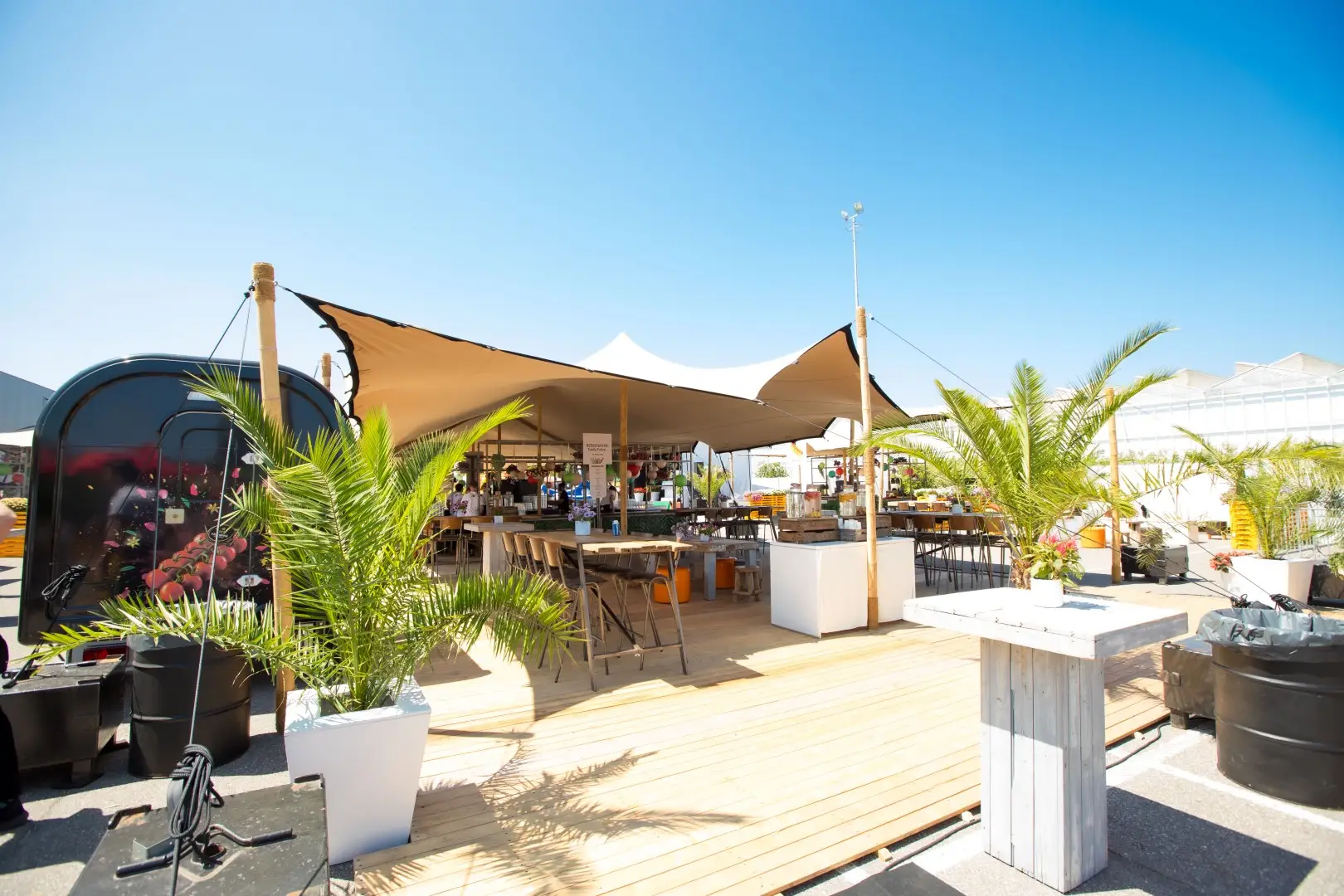 We hebben stevige windschermen die zorgen voor extra beschutting. Zo blijft het in de tent comfortabel, ook bij wind of wat kouder weer.